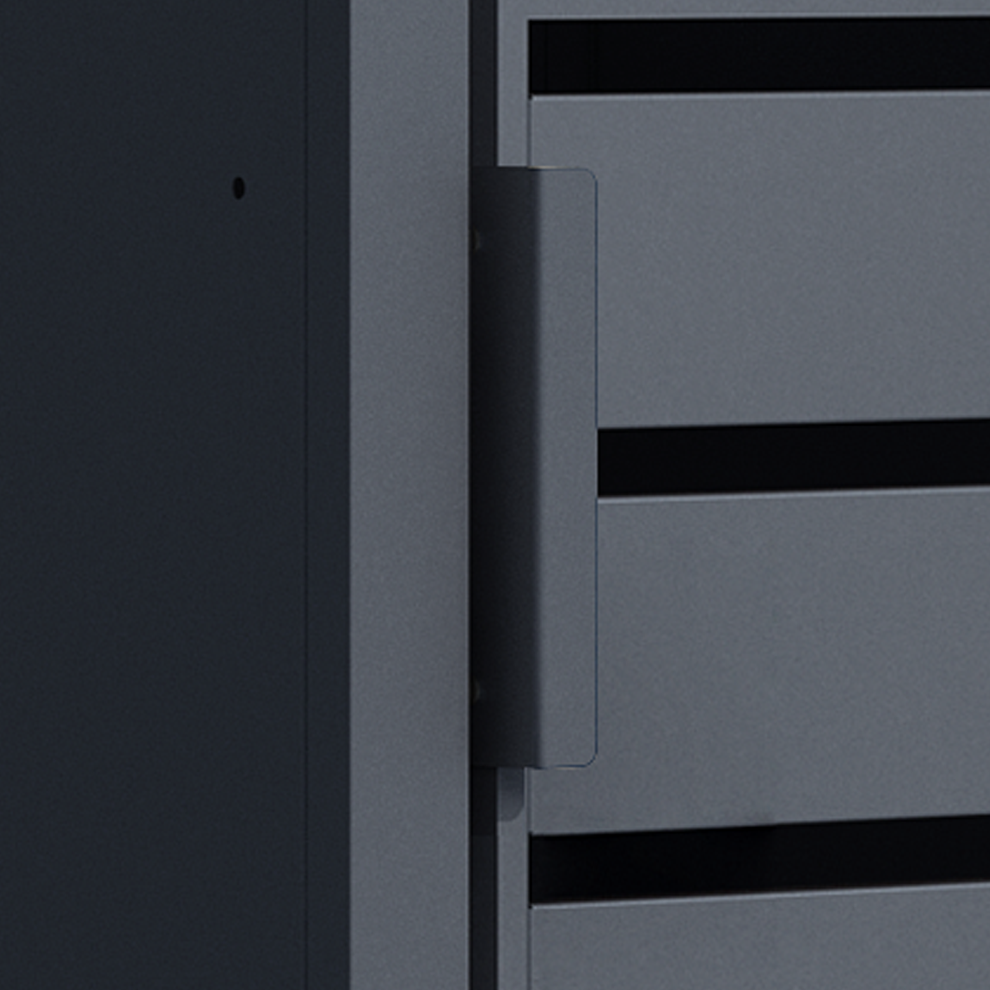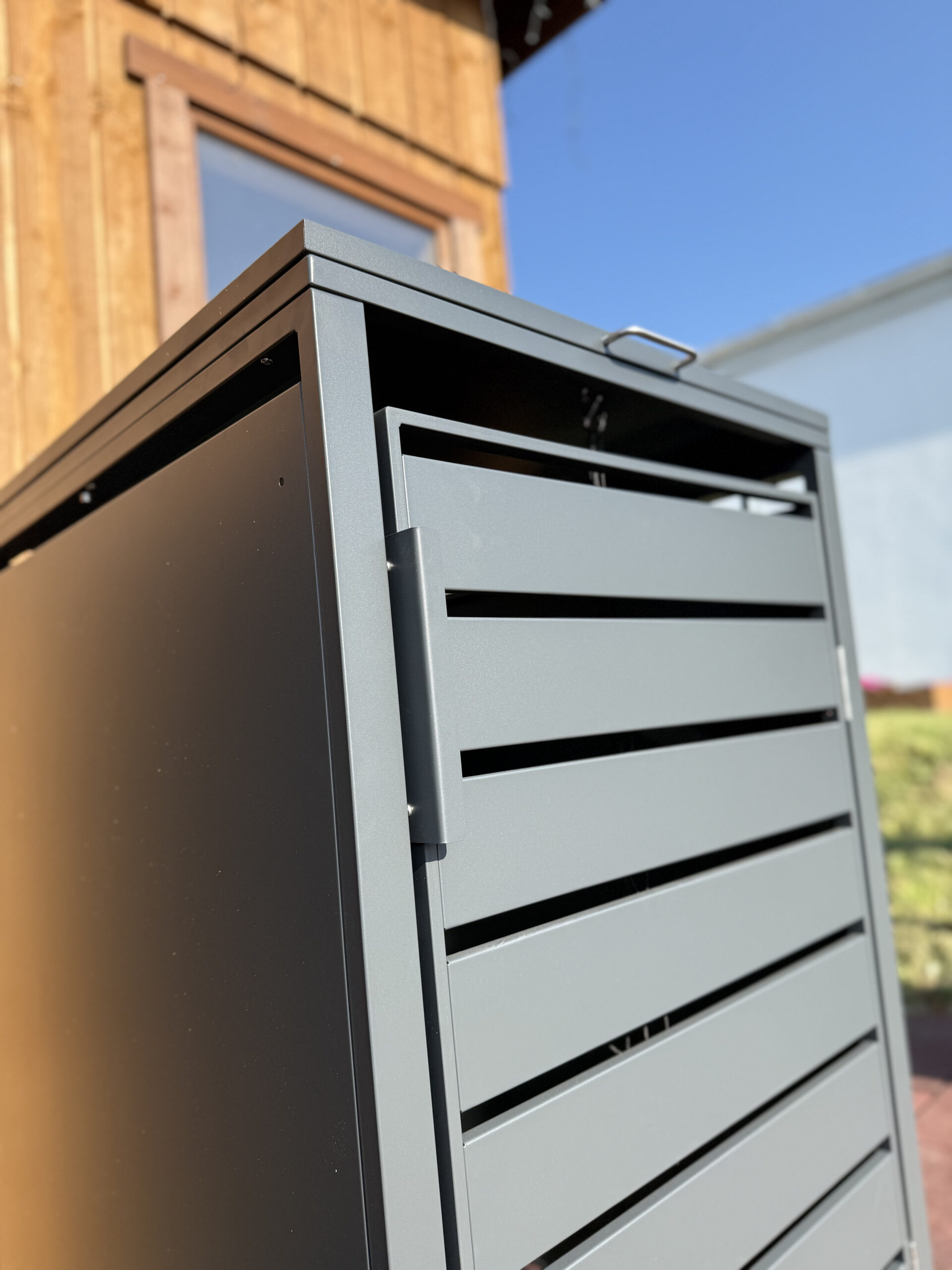 Korpus on valmistatud 0,8 mm tsingitud terasplekist ja ukseraam roostevabast terasest. Kuur säilitab oma kuju isegi pikaajalise niiskuse ja temperatuurikõikumiste korral. Pind on kaetud kvaliteetse pulbervärviga, mis tagab vastupidavuse korrosioonile, UV-kiirgusele ja kriimustustele. Antratsiithall on üks populaarsemaid värve välistingimustes kasutatavate lahenduste puhul – see mitte ainult ei peida mustust, vaid näeb ka stiilne välja.