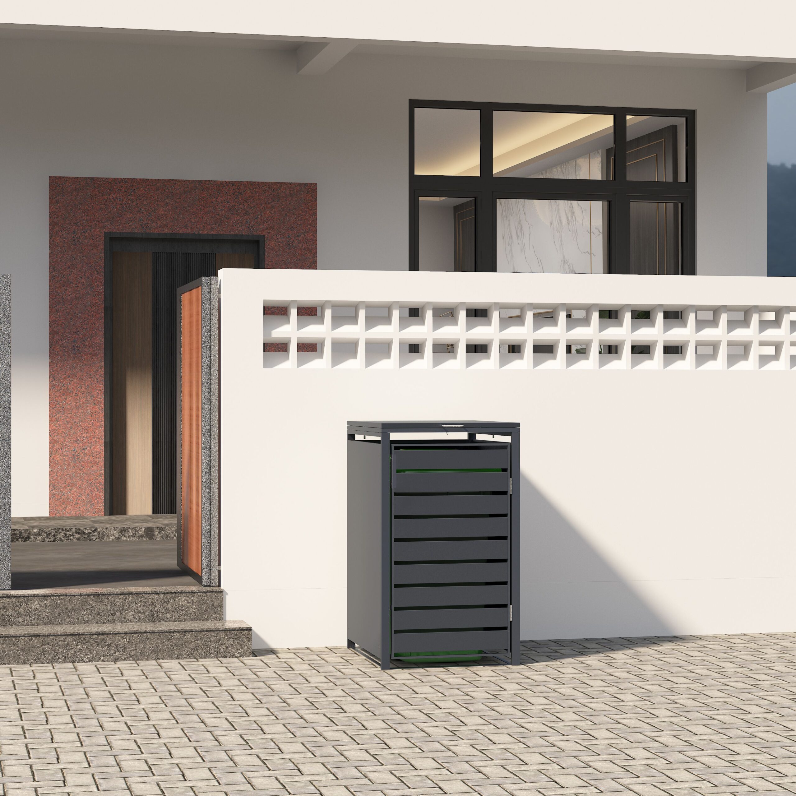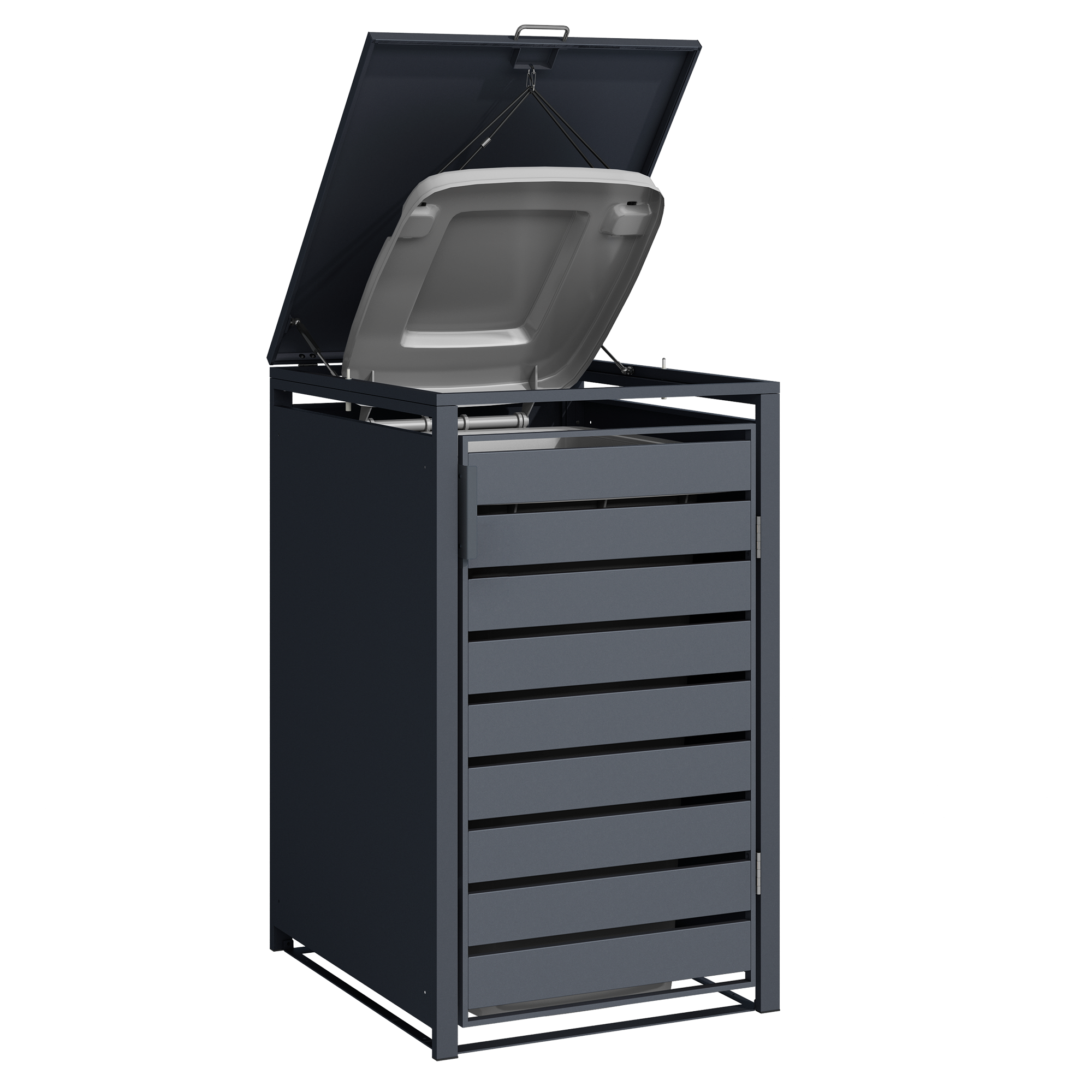 See prügikasti kuur on vastupidav ja esteetiline lahendus, mis on valmistatud tsingitud plekist ja roostevabast terasest, see peidab hästi prügikonteinerid ning sobitub suurepäraselt igasse keskkonda. Ideaalne valik neile, kes soovivad oma õuealale korda, vastupidavust ja esteetikat. Prügikasti kuur mahutab kõige sagedamini kasutatavaid prügikonteineri suurusi – 60L, 120L või 240L.