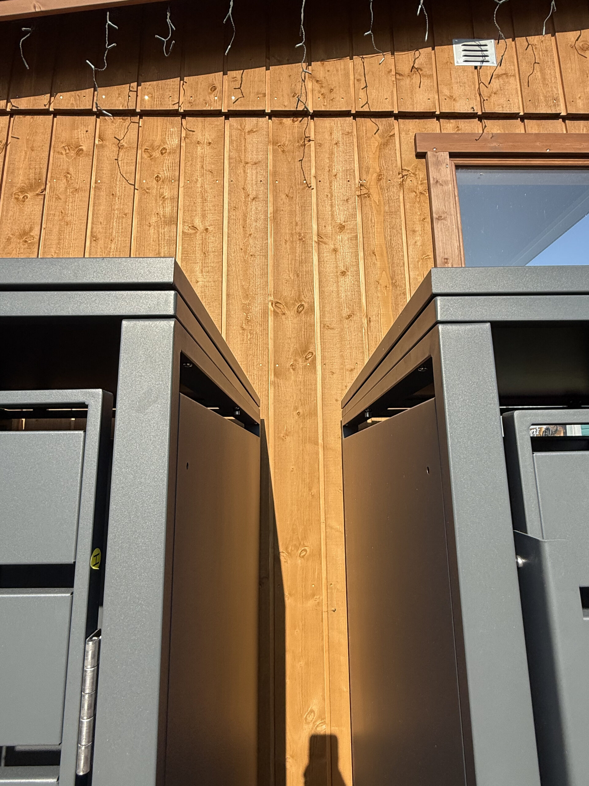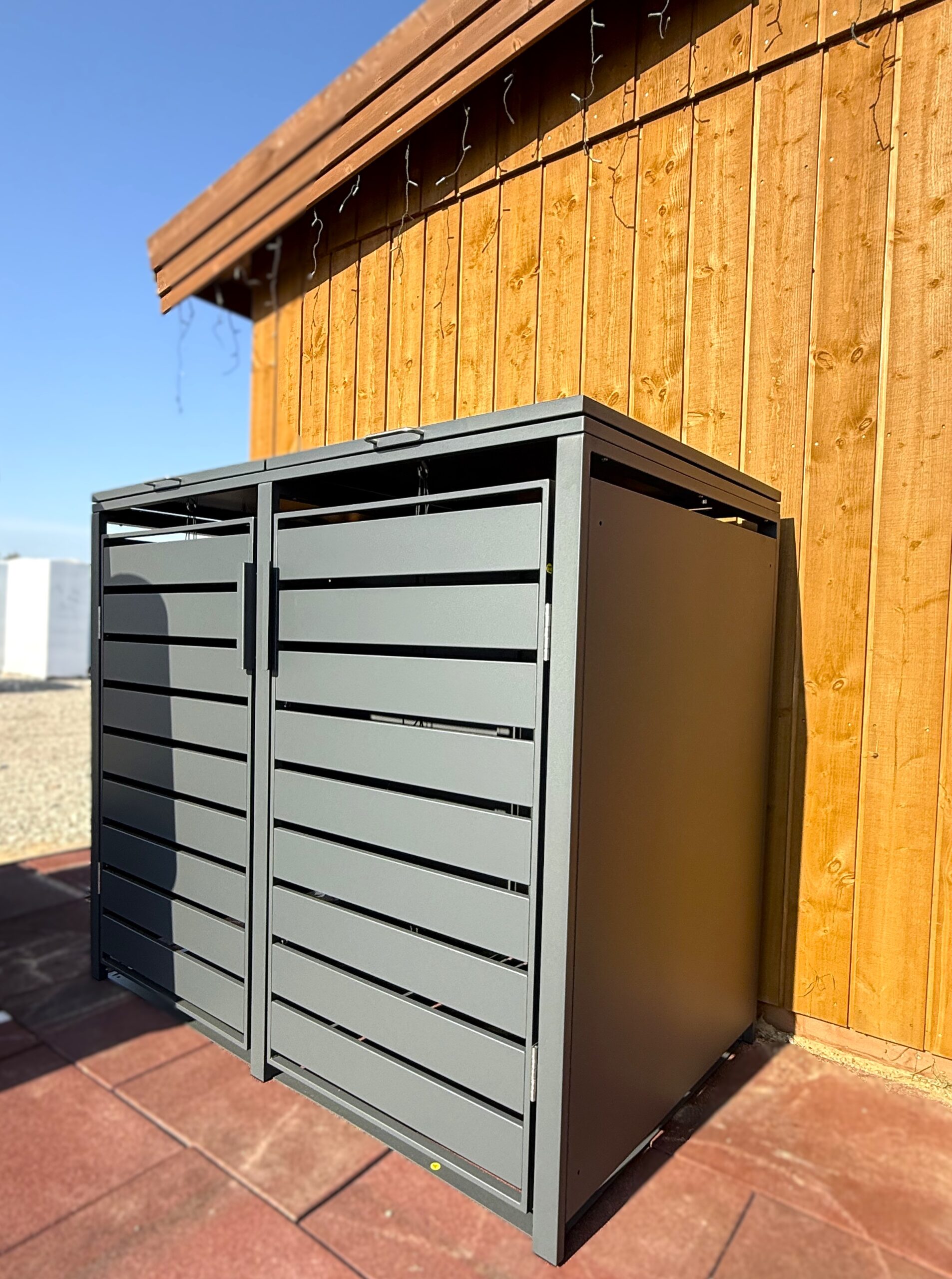 See kahekohaline prügikastide kuur on vastupidav ja esteetiline lahendus kahe prügikonteineri varjamiseks. Tsingitud lehtmetallist ja roostevabast terasest valmistatud prügikastide varikatus tagab tugevuse, vastupidavuse ja sobib ideaalselt igasse keskkonda. Ideaalne valik neile, kes soovivad oma õuealale korda, vastupidavust ja esteetikat. Kahekohaline kuur mahutab kaks prügikonteinerit– mahutavusega 60L, 120L või 240L.
