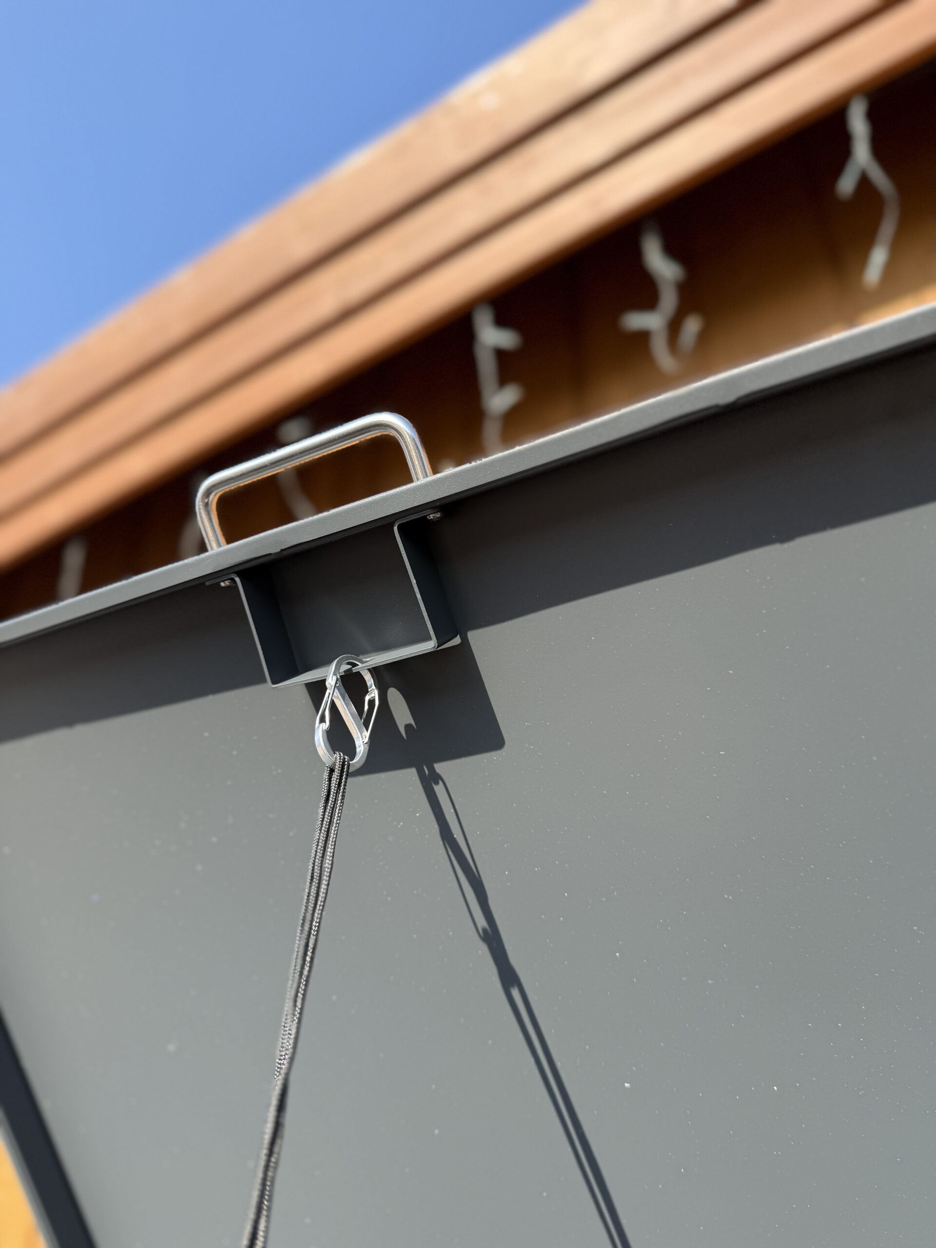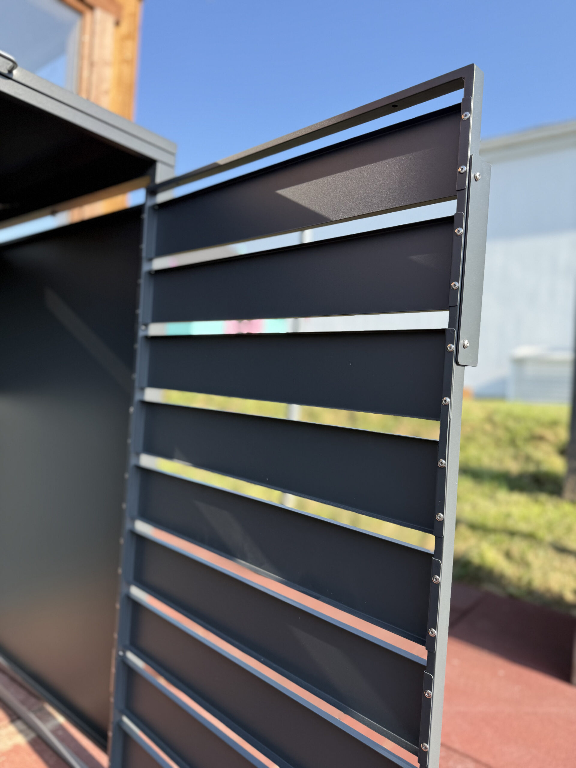 Külgpaneelil on ühendusava, mis võimaldab ühendada mitu kuuri üheks reaks või kinnitada need seina või aia külge. Ideaalne lahendus ühis- või kontorihoovide jaoks, kus kasutatakse rohkem kui ühte prügikastide kuuri.