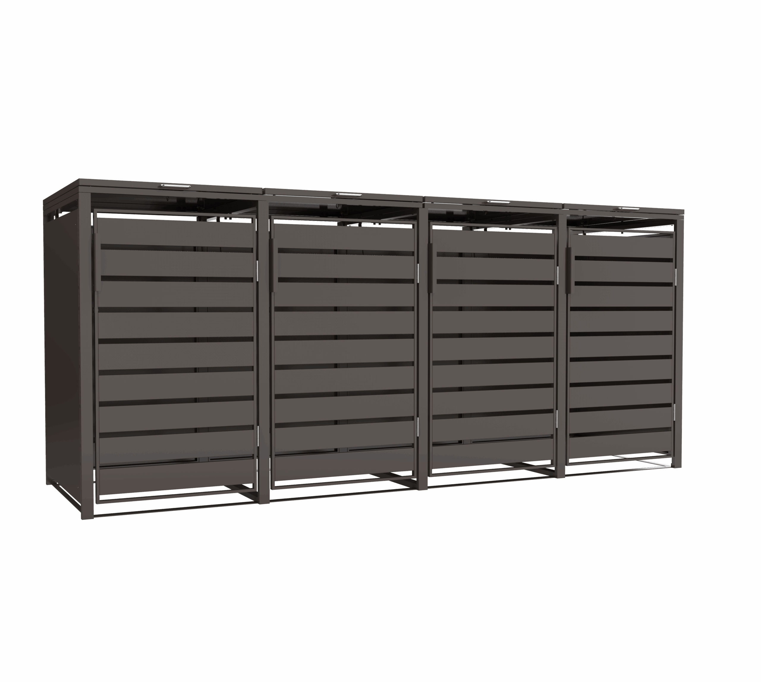 See neljakohaline prügikastide kuur on vastupidav ja esteetiline lahendus nelja prügikonteineri varjamiseks. Tsingitud lehtmetallist ja roostevabast terasest valmistatud prügikastide varikatus tagab tugevuse, vastupidavuse ja sobib ideaalselt igasse keskkonda. Ideaalne valik neile, kes soovivad oma õuealale korda, vastupidavust ja esteetikat.