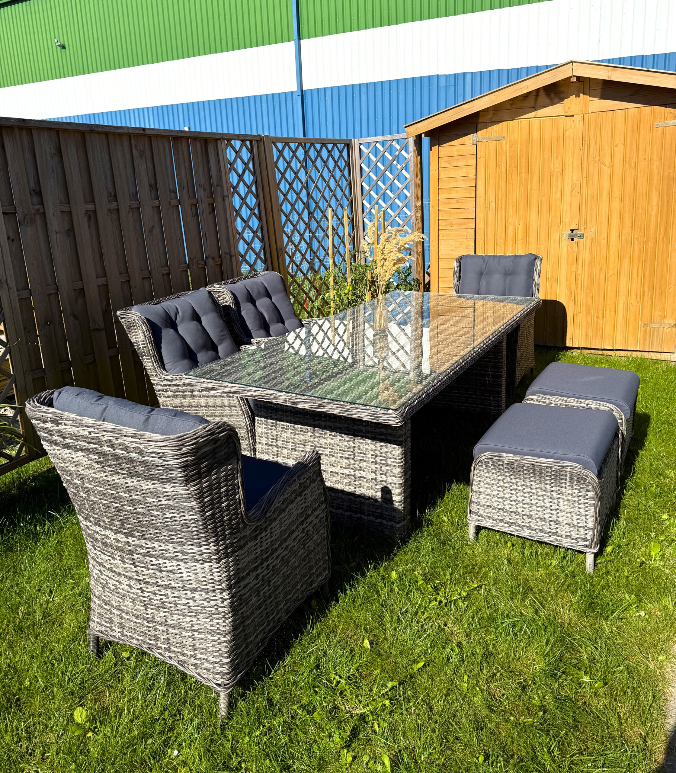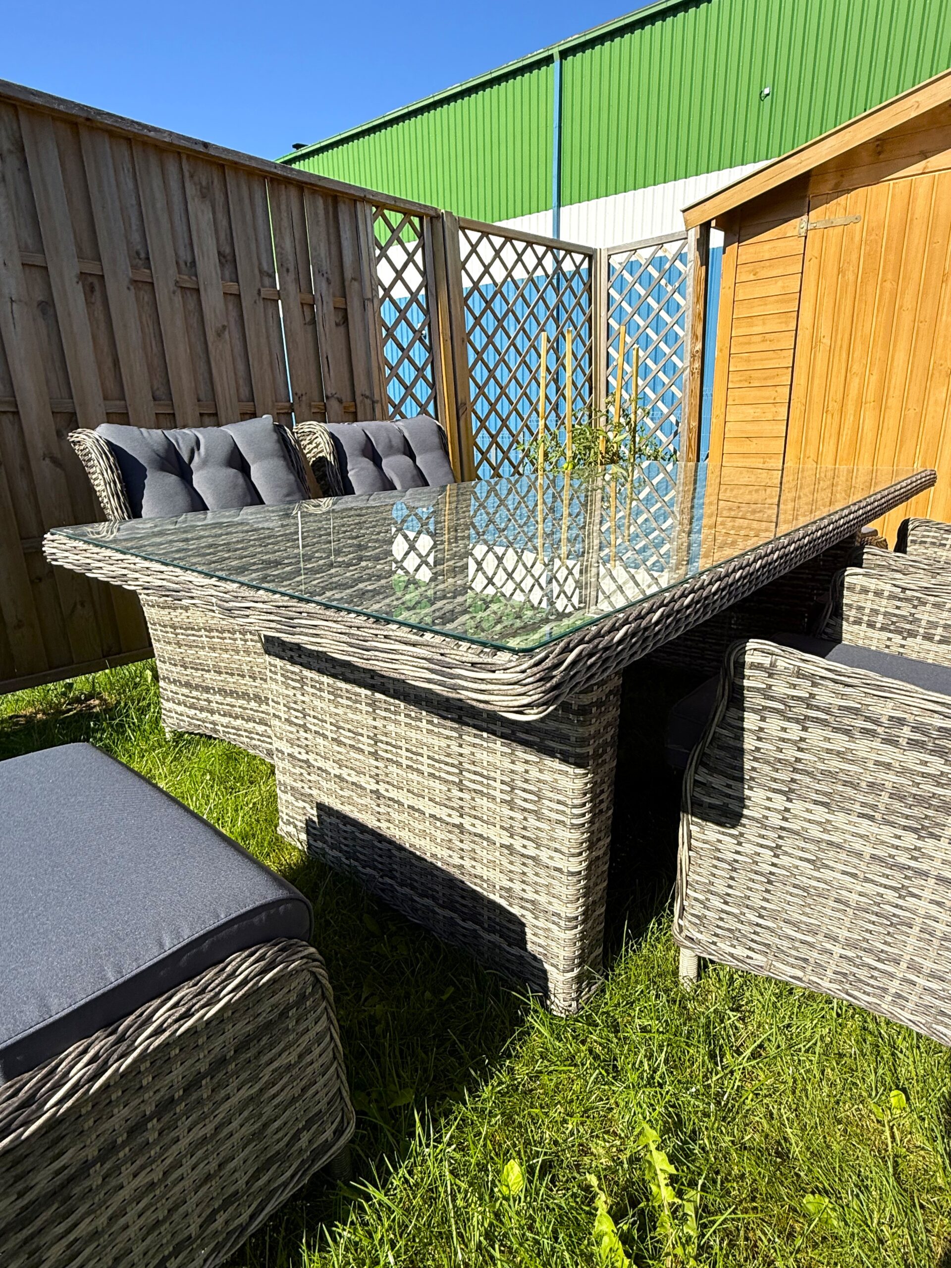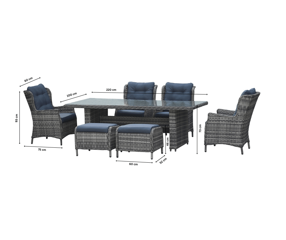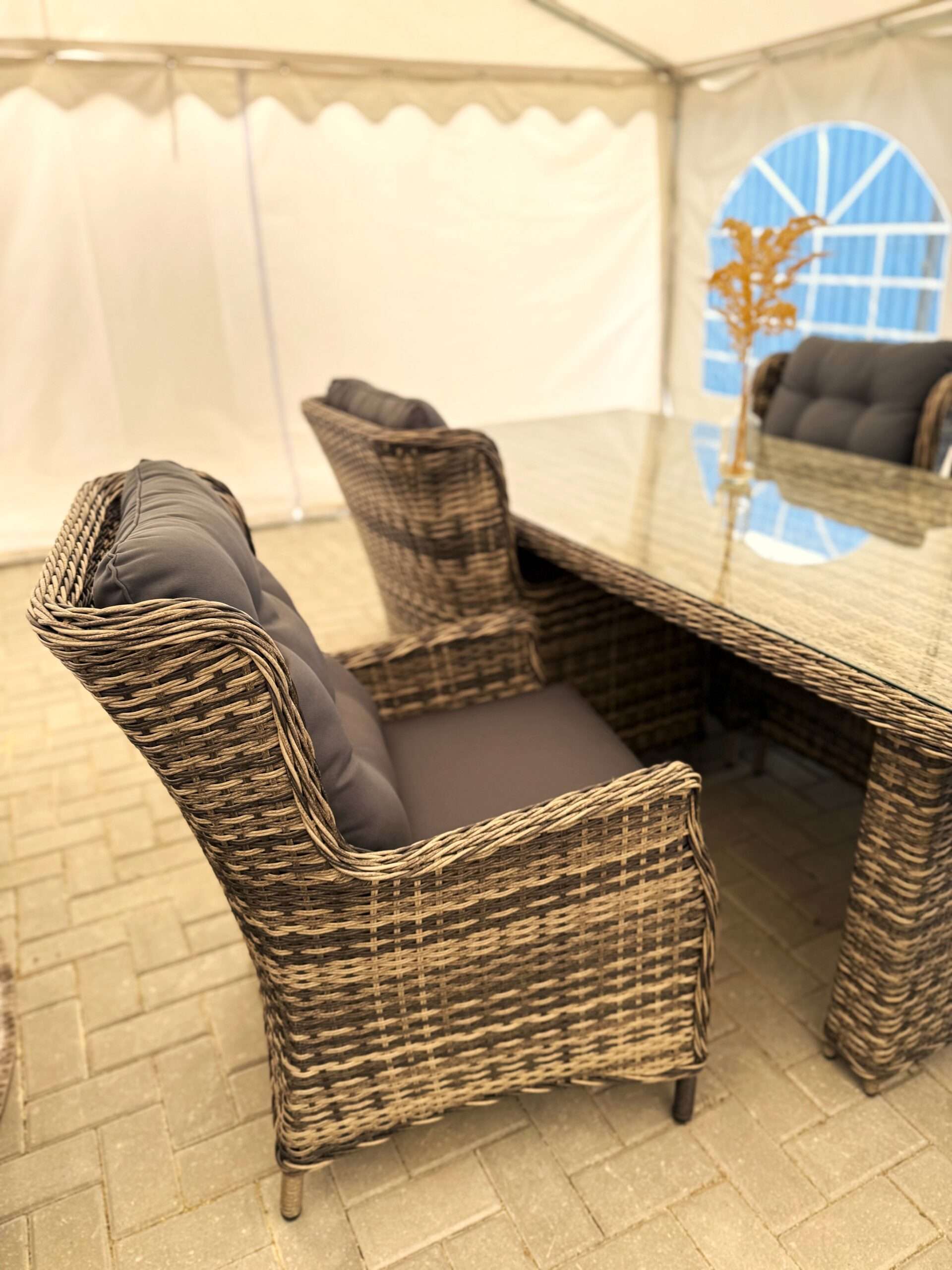 Seitsmeosaline välimööbli komplekt on ideaalne valik neile, kellele meeldib mugavus, funktsionaalsus ja kaasaegne disain. Kvaliteetsetest materjalidest valmistatud komplekt on kauakestev ja vastupidav keskkonnamõjudele. See sobib ideaalselt terrassidele, aedadesse või paviljoni, pakkudes hubast kohta lõõgastumiseks. Aiamööbli komplektiga saate nautida mõnusaid perekondlike õhtuid või seltskondlike koosviibimisi sõpradega.