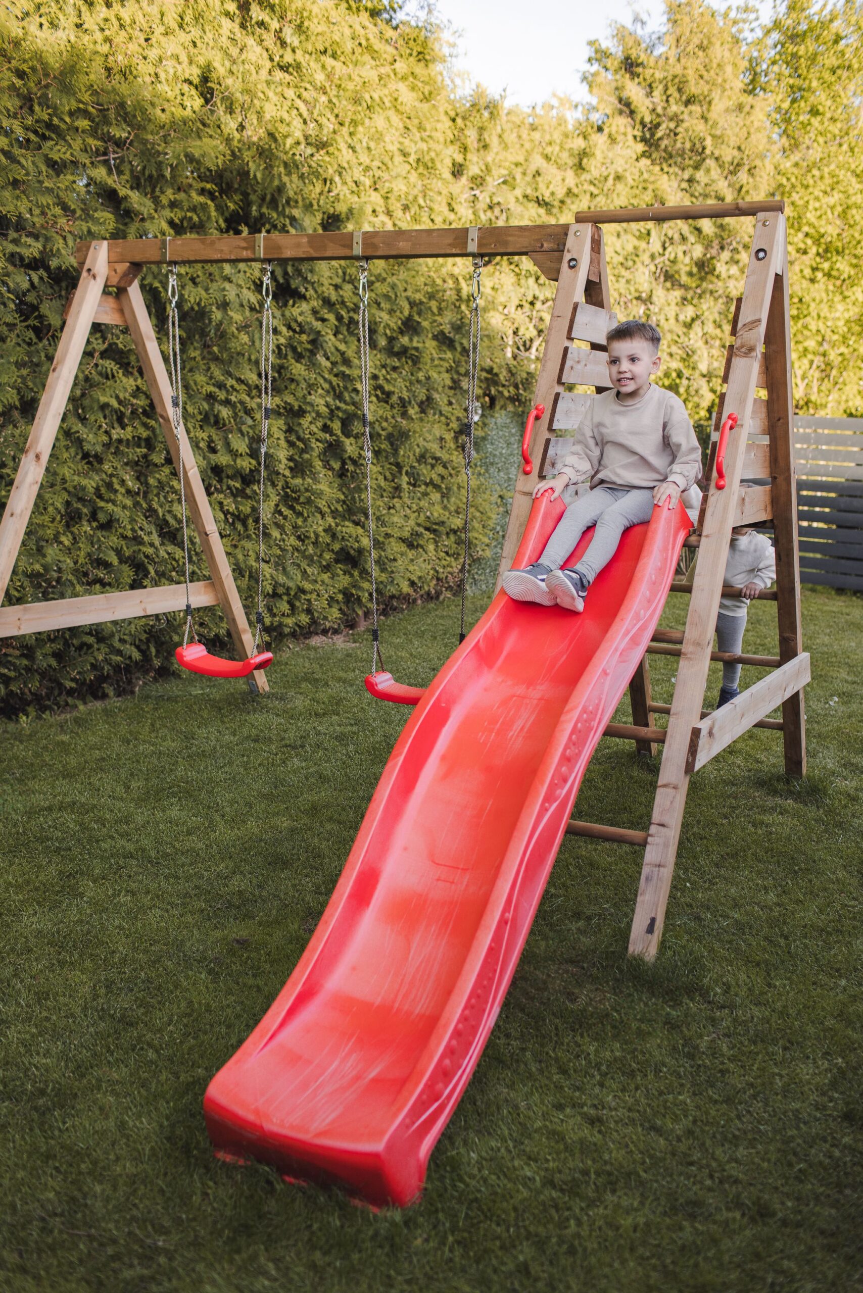 Mänguväljakuga ei ole kaasas liumäge, selle saab soovikorral juurde osta. Soovitame lisada 220 cm liumäe.