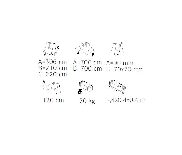 - Puitraam (ülemine tala: 9 x 9 cm, jalad: 7 x 7 cm)