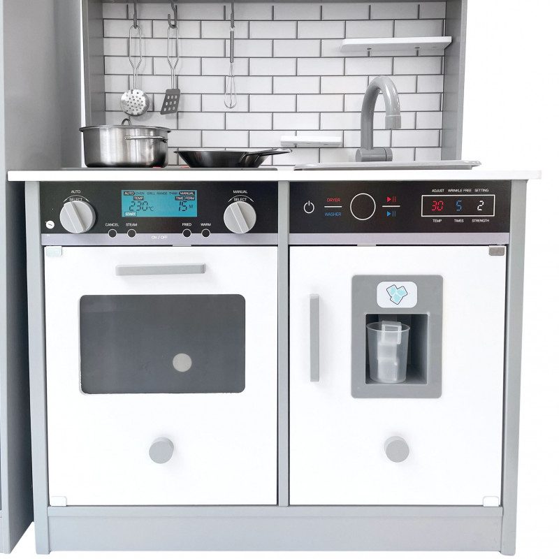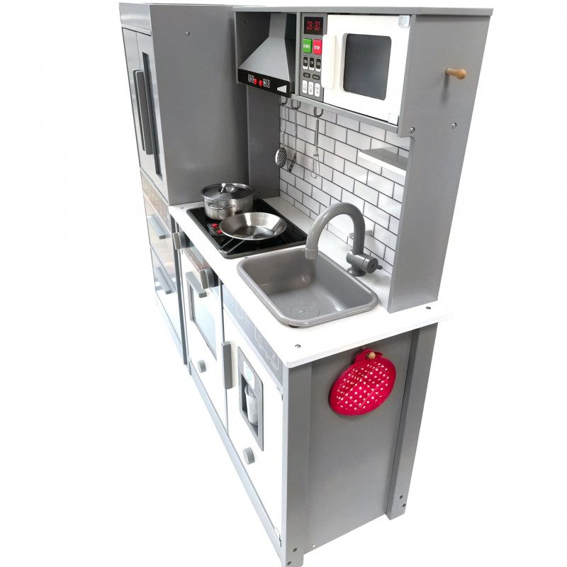 Mis võiks olla lõbusam kui oma kööginurk, kus kokaoskusi proovile panna. Mänguköögis on kaasaegsed, funktsionaalsed ja realistlikud seadmed – valamu, pliit, ahi, mikrolaineahi. Ahjus saab küpsetada maitsvat õunakooki, potis keeta sooja suppi ning pannil valmistada parimat munaputru hommikusöögiks. Puidust mänguköök on ideaalne mänguvahend laste iseseisvuse, loovuse ja kujutlusvõime arendamiseks. Omanäolise disainiga kööginurk sobib ideaalselt pisikeste mängunurka.