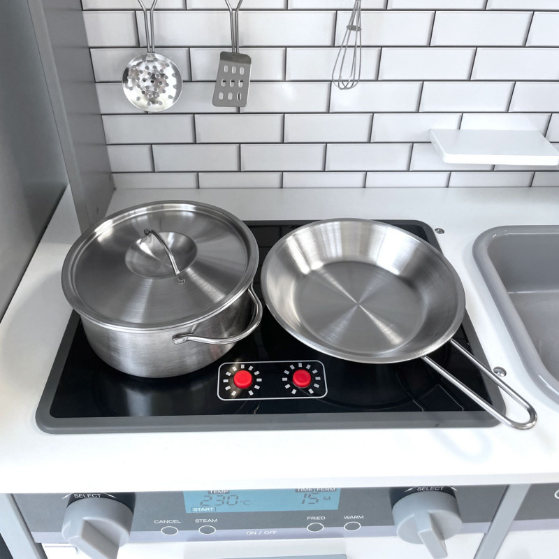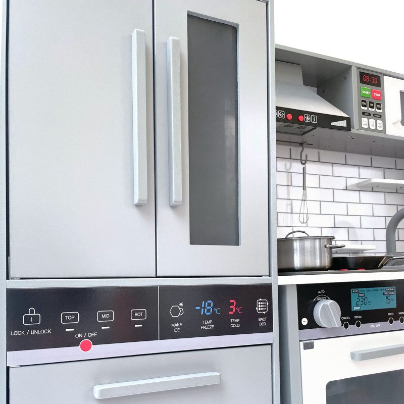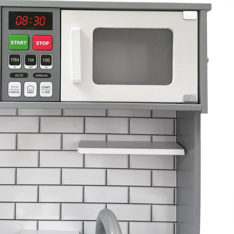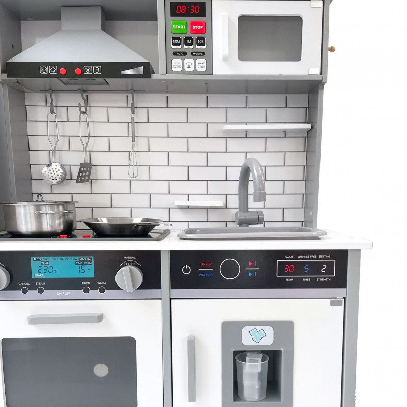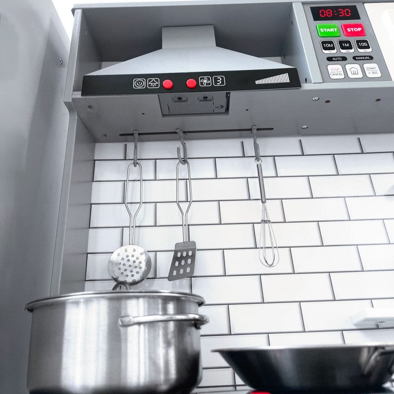 Pliit on varustatud LED-valgustuspaneeliga, mis tekitab realistlike helisid toiduvalmistamisel. Pliidikubu teeb ventilaatori müra ning mikrolaineahjul on käivitus- ja seiskamisnupud – täpselt nagu päris köögis!