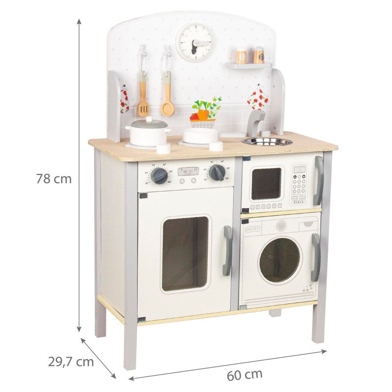 Minimalistliku disainiga kompaktne köök pisikestele kokkadele. Mänguköögis on olemas kõik vajalik, et lapsed saaksid võimalikult mugavalt valmistada erinevaid maitsvaid roogasid ning sukelduda toredasse mängumaailma.