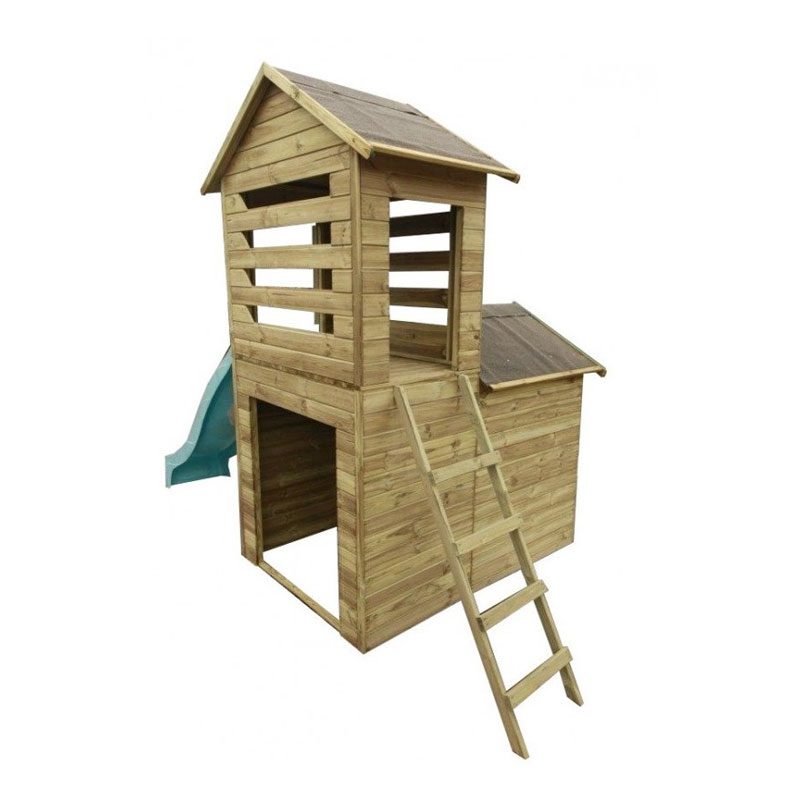 EMIL on kahekorruseline omanäolise disainiga laste mängumaja! Maja hind on näidatud ilma liumäeta, soovikorral saab juurde osta 220 cm pikkuse liumäe.