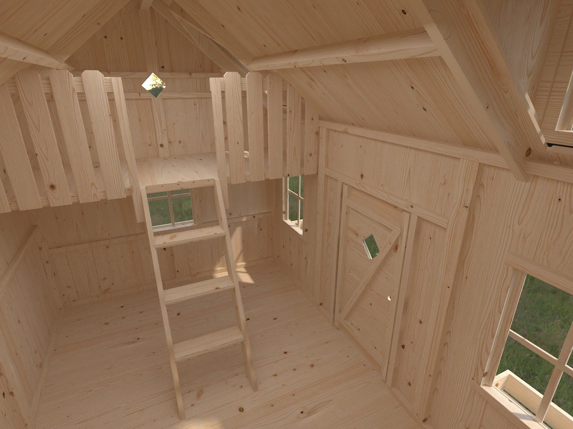 Mängumaja saabub monteerimata ning värvimata kujul. Piltidel on näiteid, milline kokkupandud ja värvitud maja võiks välja näha.