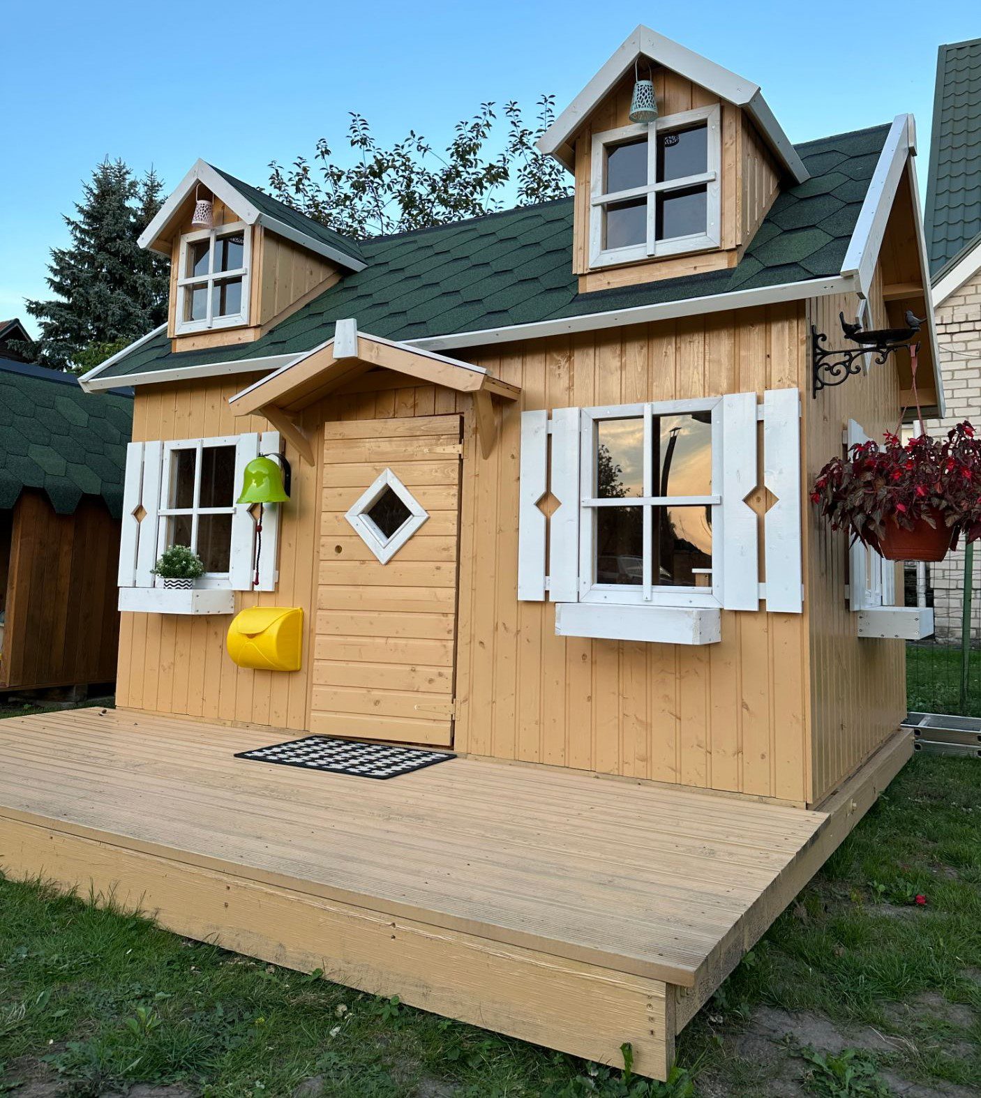 Laste turvalisuse tagamiseks on mängumaja sertifitseeritud ning vastab rangetele Euroopa Liidu ohutusnõuetele. Mängumaja kaunistab teie õueala ning pakub meeldejäävaid elamusi teie pere pisimatele.