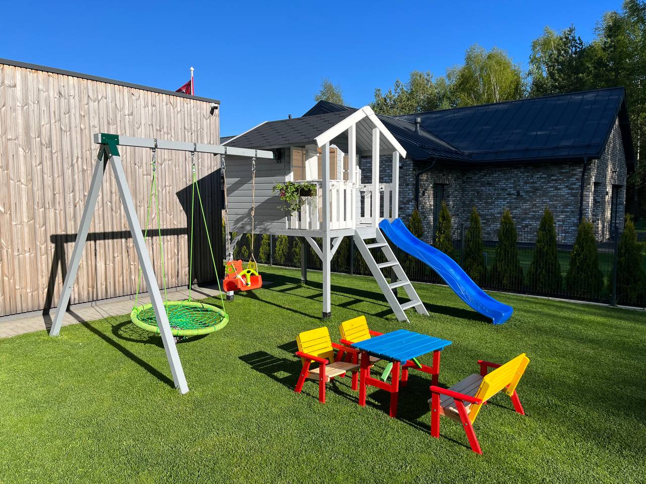 Sellele majale saab kinnitada täiendava kiigemooduli – ühe kiigega puidust lisamoodul C, kahe kiigega puidust lisamoodul D. Samuti saab mängumaja külge kinnitada ronimiskividega puidust ronimisseina, et ka kõige aktiivsemad lapsed saaksid oma energiat lõbusal viisil kulutada.