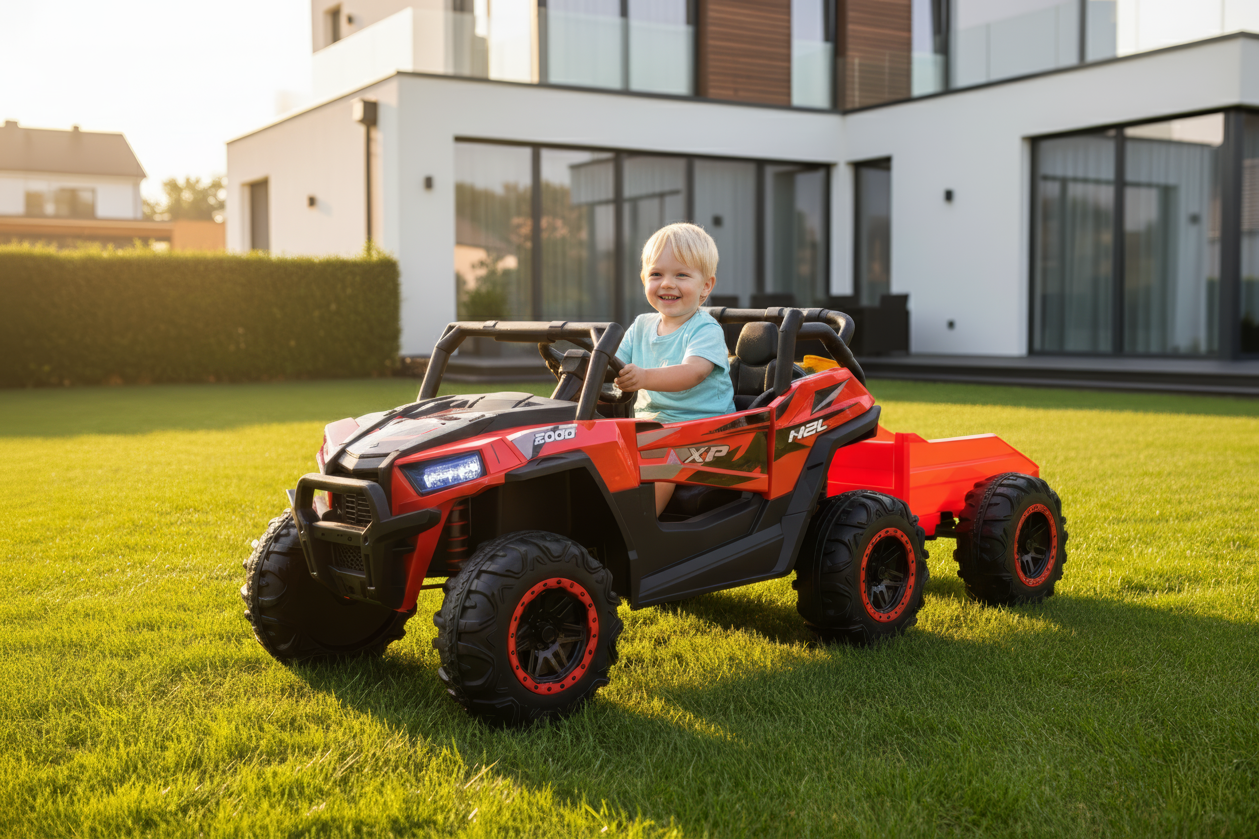 - Topeltjuhtimine – käsitsi ja kaugjuhtimisega (2.4G R/C) – vanemad saavad autot kaugjuhtimispuldiga juhtida ja kui laps kasvab suuremaks, lasta tal iseseisvalt sõita. See tagab ohutuse ja paindlikkuse.