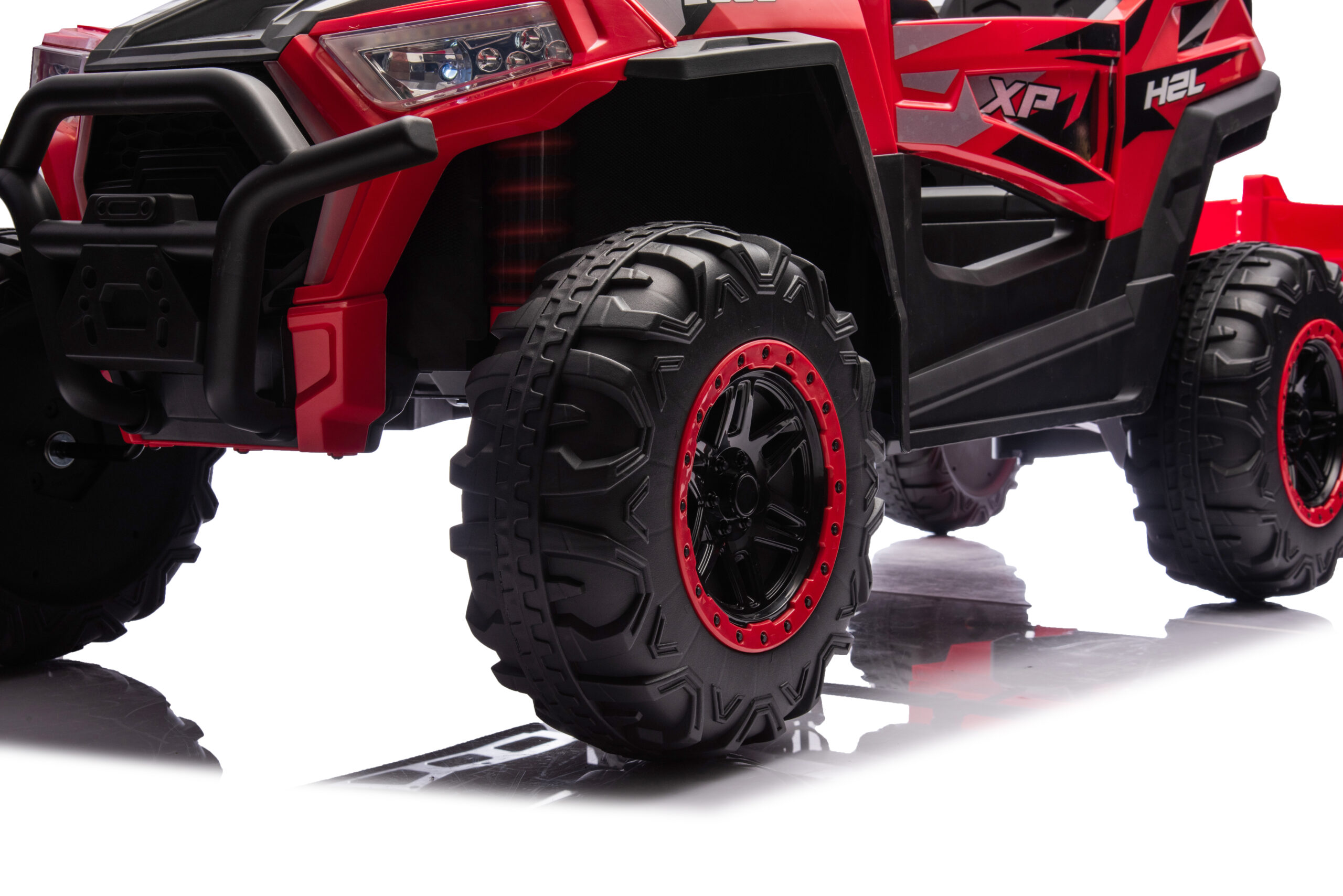 - Võimas 24 V 7 Ah aku ja kaks 45 W mootorit – mahukas aku ja võimsad mootorid tagavad suurema jõu, parema läbitavuse maastikul ja pikema sõiduaja.