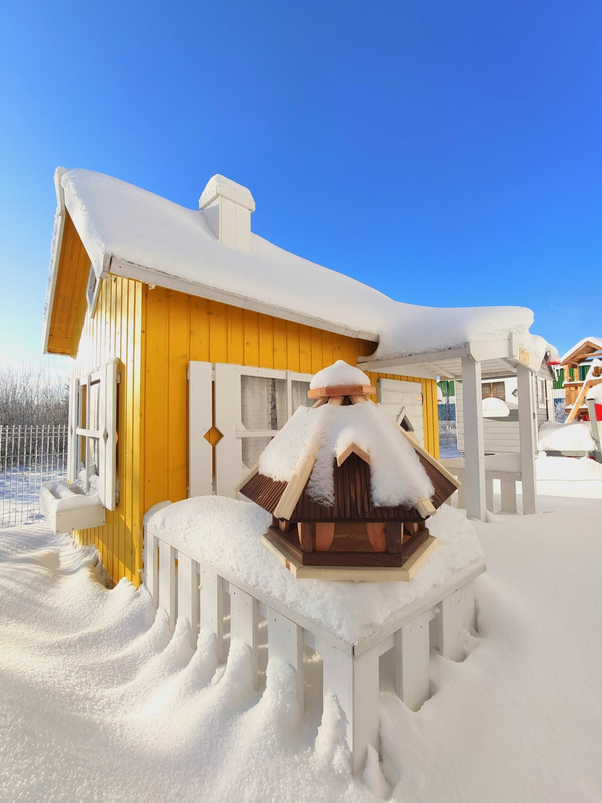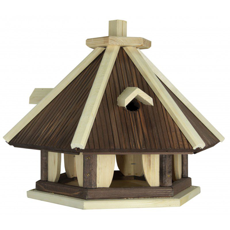 See silmapaistva disainiga linnusöögimaja köidab kindlasti lindude tähelepanu ning on ka tore aiakaunistus tuues teie õuele juurde elu ja kaunist linnulaulu. Igale linnusõbrale meeldib vaadata, kuidas linnud rõõmsalt majas toimetavad, nende toitmine on eriti oluline külmal aastaajal, mil lindudel on rohkem toidupuudust. Vastupidav ja keskkonnasõbralik okaspuust valmistatud varikatusega linnumaja on ilmastikukindel ning kasutatav aastaringselt. Linnusöögimajal on suur söötmisplatvorm ja katus, nii püsib neile asetatud toit kuivana. Lisage majja veidi sobilikku toitu ja linnud külastavad teid hea meelega iga päev!