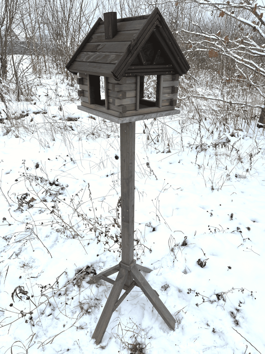 See silmapaistva disainiga linnusöögimaja köidab kindlasti lindude tähelepanu ning on ka tore aiakaunistus tuues teie õuele juurde elu ja kaunist linnulaulu. Igale linnusõbrale meeldib vaadata, kuidas linnud rõõmsalt majas toimetavad, nende toitmine on eriti oluline külmal aastaajal, mil lindudel on rohkem toidupuudust. Vastupidav ja keskkonnasõbralik okaspuust valmistatud varikatusega linnumaja on ilmastikukindel ning kasutatav aastaringselt. Linnusöögimajal on suur söötmisplatvorm ja katus, nii püsib neile asetatud toit kuivana. Lisage majja veidi sobilikku toitu ja linnud külastavad teid hea meelega iga päev!