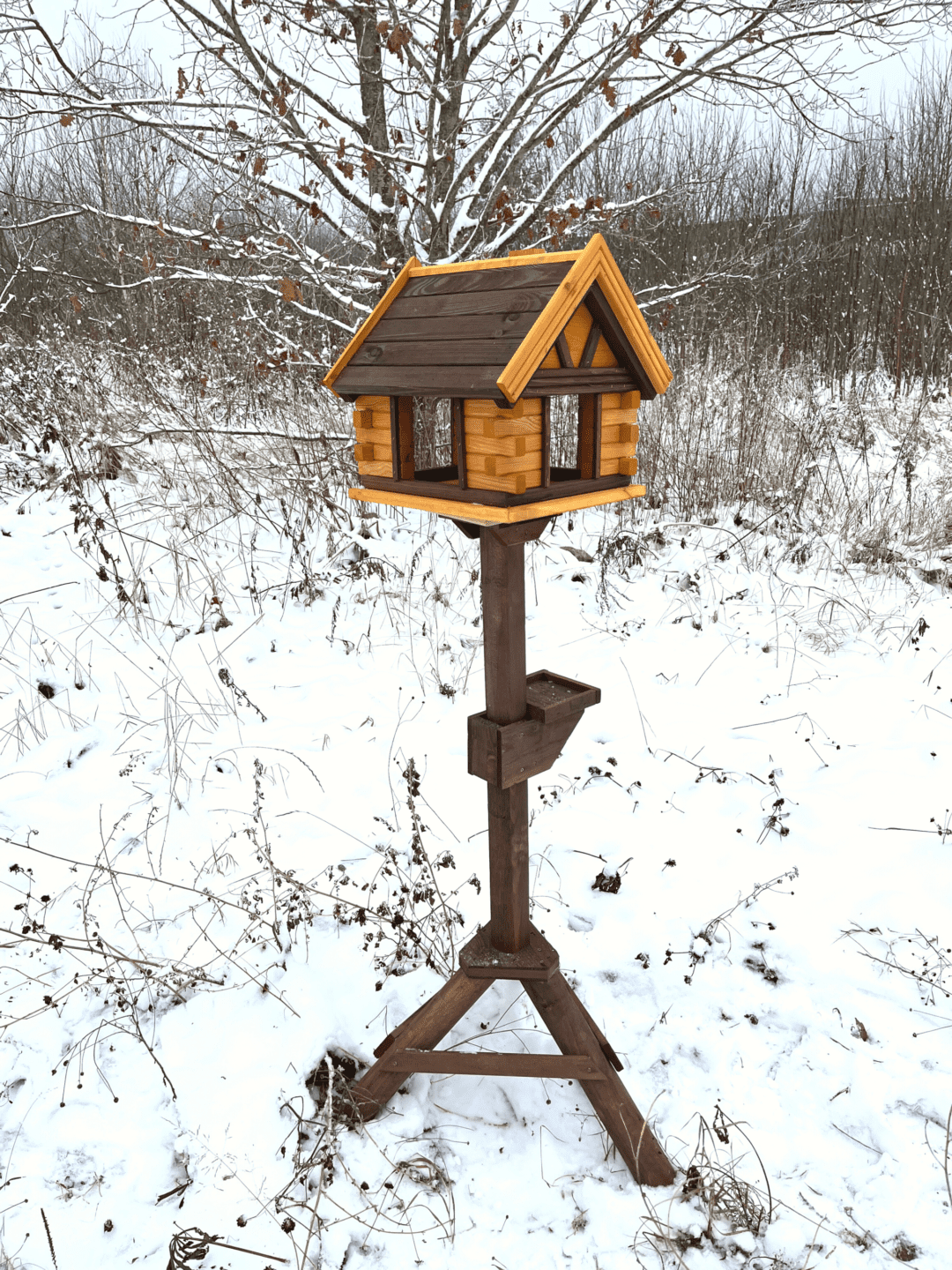 See silmapaistva disainiga linnusöögimaja köidab kindlasti lindude tähelepanu ning on ka tore aiakaunistus tuues teie õuele juurde elu ja kaunist linnulaulu. Igale linnusõbrale meeldib vaadata, kuidas linnud rõõmsalt majas toimetavad, nende toitmine on eriti oluline külmal aastaajal, mil lindudel on rohkem toidupuudust. Vastupidav ja keskkonnasõbralik okaspuust valmistatud varikatusega linnumaja on ilmastikukindel ning kasutatav aastaringselt. Linnusöögimajal on suur söötmisplatvorm ja katus, nii püsib neile asetatud toit kuivana. Lisage majja veidi sobilikku toitu ja linnud külastavad teid hea meelega iga päev!