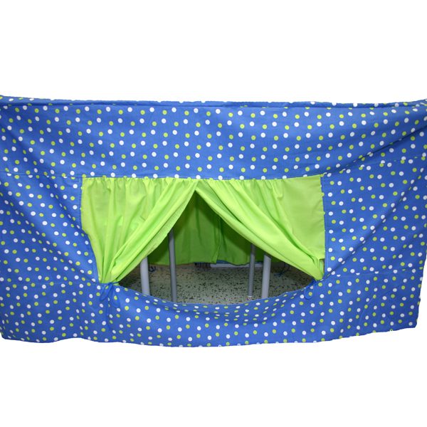 Mängutelgi kangas muudab standardsuurusega laua (120 × 60 × 60 cm) koheselt hubaseks peidupaigaks, mängu- või lugemisnurgaks. Lauale kinnitatavat telki on lihtne püsti panna ja maha võtta, sellel on mugav sissepääs ning kardinate ja kinnitusribadega aknad. Lauatelk soodustab loomingulist rollimängu, lugude loomist ja sotsiaalsete oskuste arendamist. See loob turvalise ja kaasahaarava koha, kus lapsed saavad mängida peitust või muid mänge.