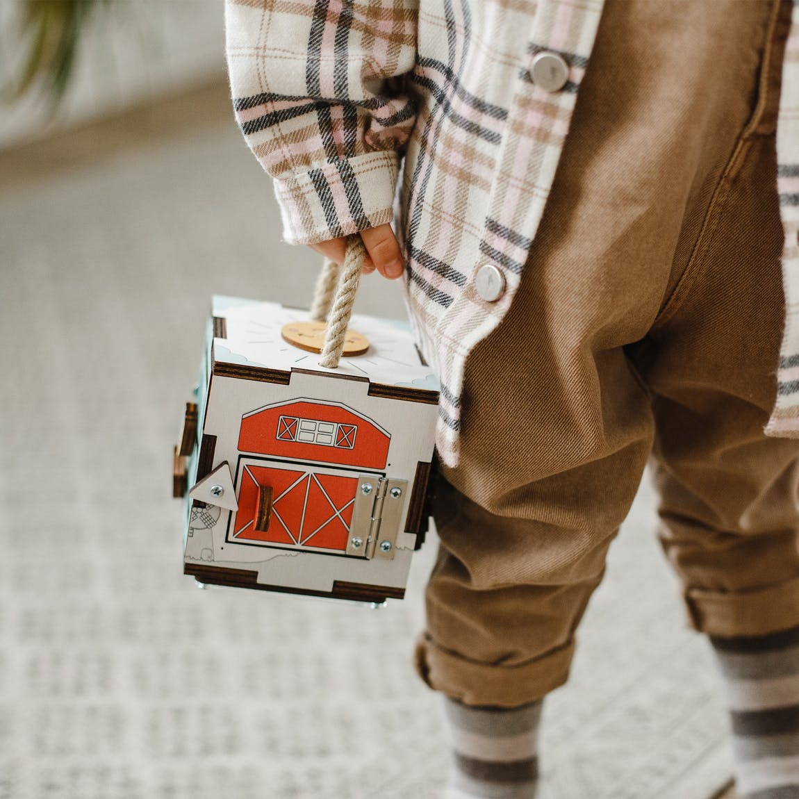 Mitmeotstarbeline montessorist inspireeritud mini busy cube mänguasi. See aktiivsuskuubik sisaldab endas erinevaid mängulisi tegevusi, mis aitavad lastel arendada oma peenmotoorika ja loogilise mõtlemise oskusi ning lasta kujutlusvõimel ja loovusel lennata. Tänu oma kompaktsusele on seda ka hea kaasa võtta pikkadele autosõitudele või reisidele.