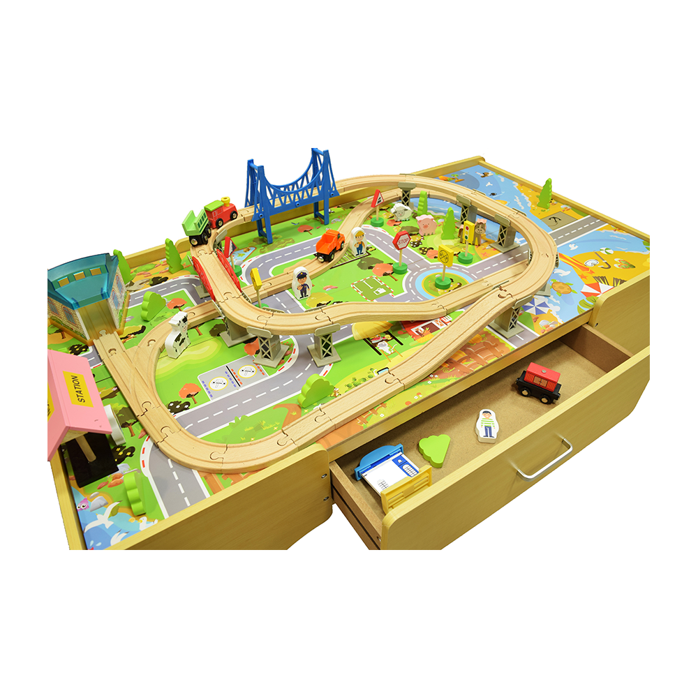 Laste unistuste mängulaud, mis arendab pisikeste kujutlusvõimet ning kus sünnivad mitmesugused põnevad seiklused. Komplekt koosneb 80 osast. 5 sõidukit ja mitu erinevat võimalust rongiraja, teede, sildade, hoonete, tunnelite, lennuraja, inimfiguuride, liiklusmärkide ja muude tarvikute kasutamiseks. Huvitav ka vanematele koos lapsega mängides!