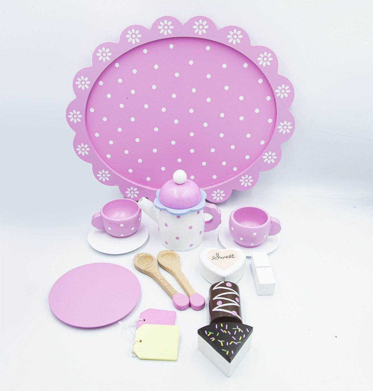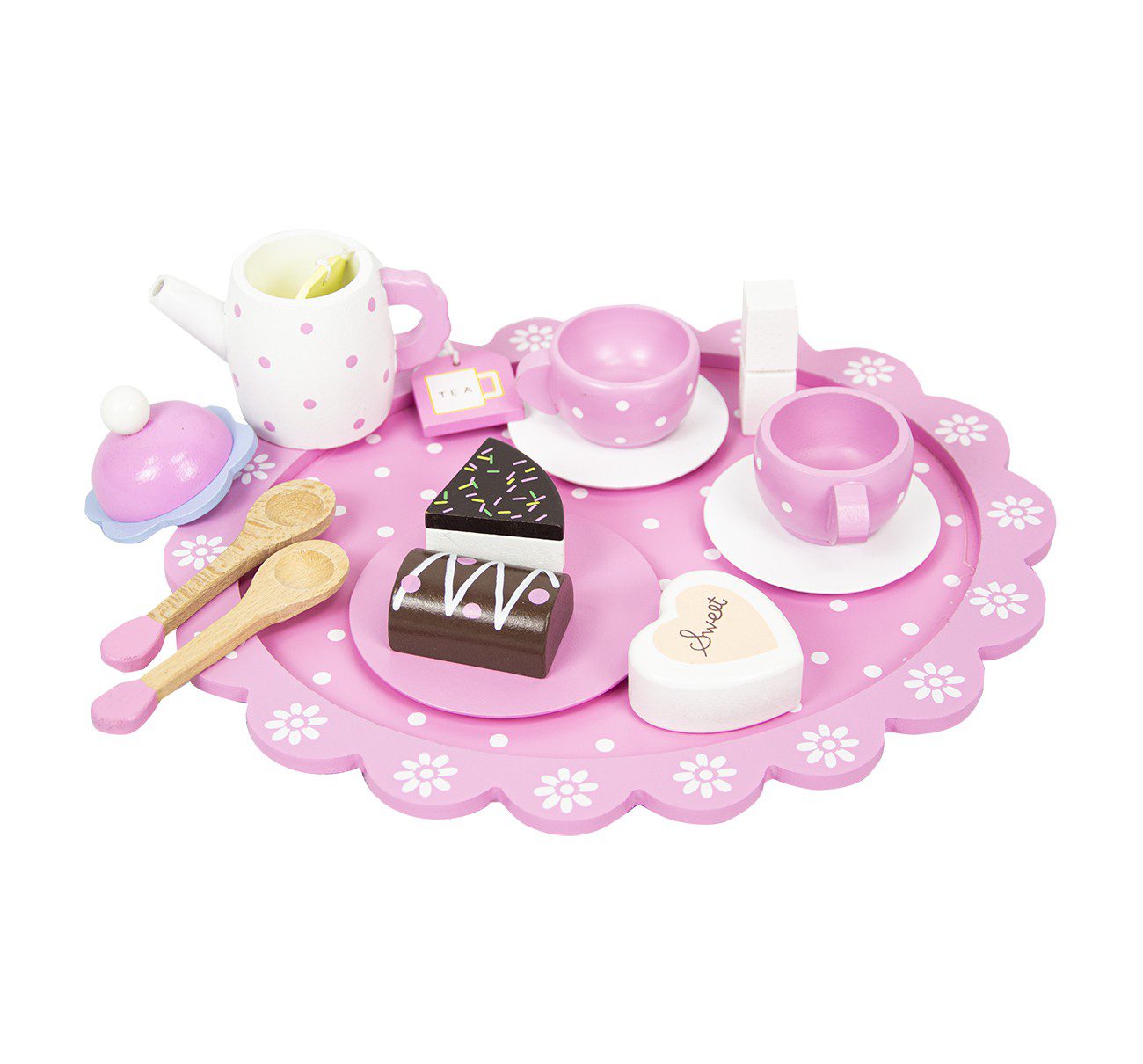 Puidust teeserviisi komplekt on just see tore mänguasi, mis aitab lastel korraldada lõbusaid koosviibimisi sõpradega! Komplektis on teekann, kaks tassi ning taldrik magustoitudega, mida saab sõprade või lemmik kaisukarudega jagada. Kõik see on asetatud kaunile roosale lillelisele kandikule.