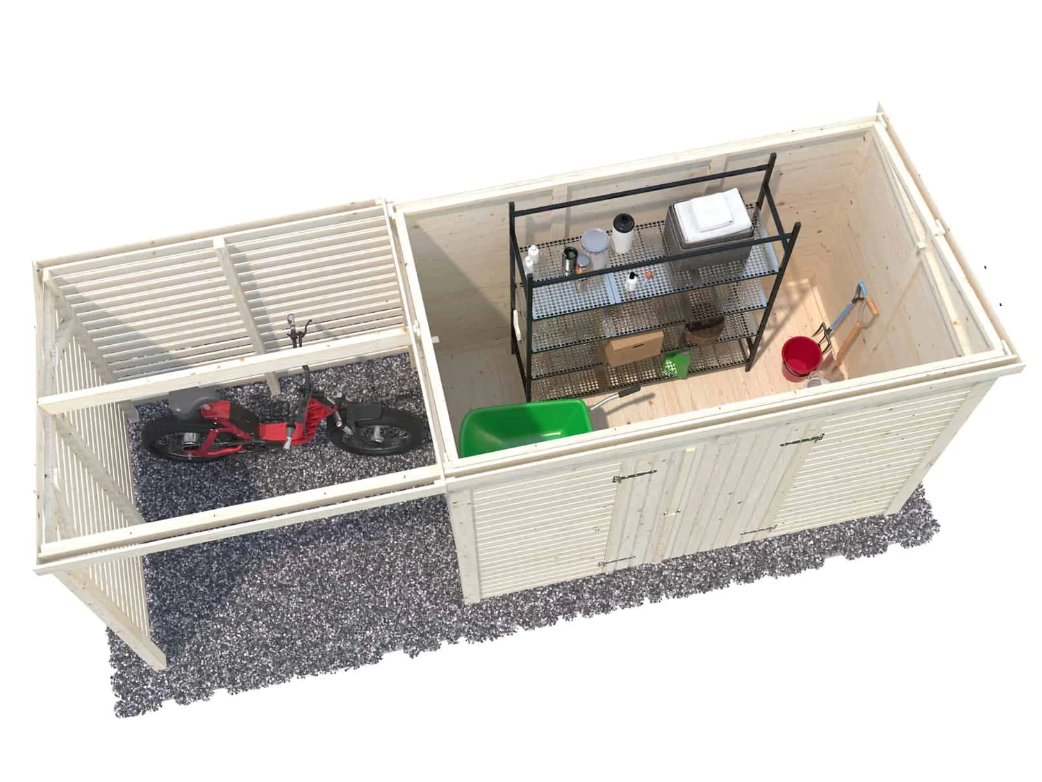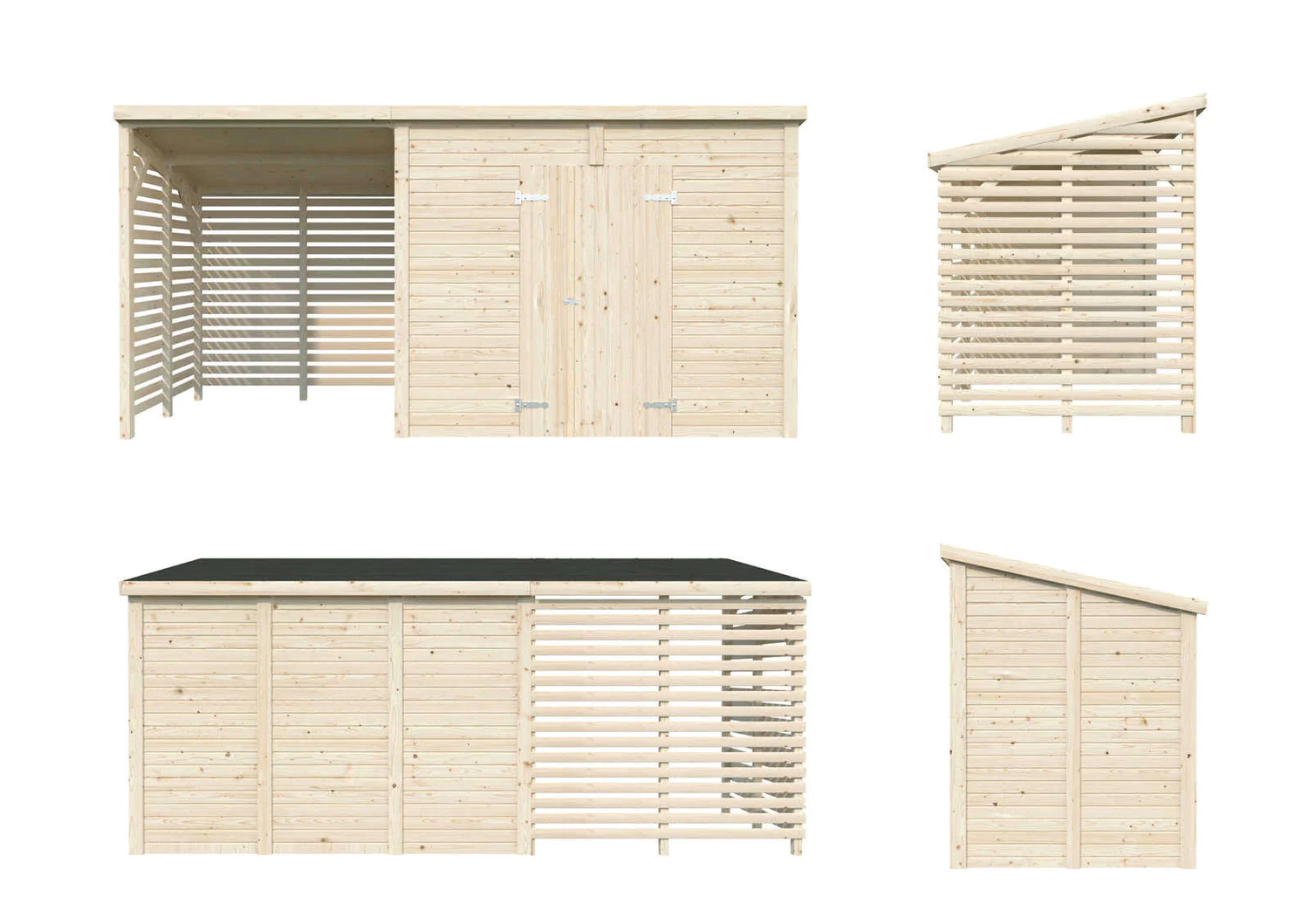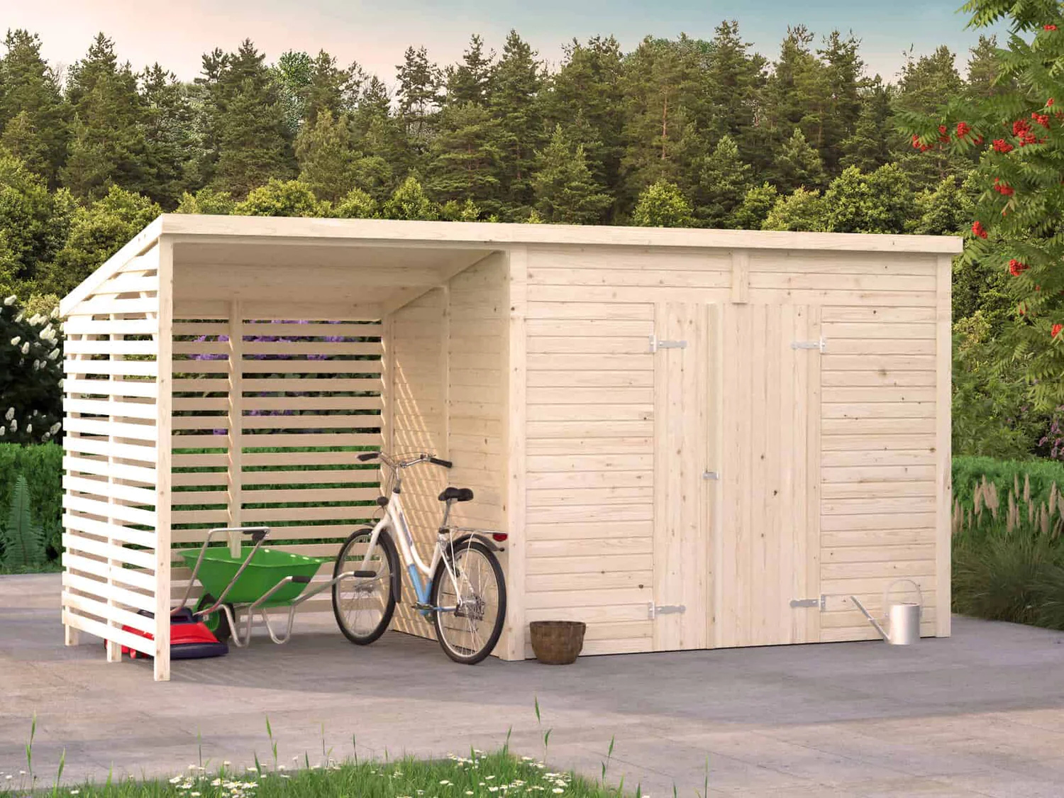Puidust panipaik LEIF 4,5 m2 koos varjualusega, mille suurus 2,9 m2. Puidust kuur on ideaalne lahendus, kui pole kodus kohta, kus hoiustada erinevaid aiatööriistu ja aiatehnikat. Panipaika saab kasutada ka küttepuude ladustamiseks, erinevate vajalike tööriistade, jalgrataste või tõukerataste hoidmiseks. See aitab teil hoovis korda hoida, kõik vajalikud asjad on korrektselt ära pandud ning sealjuures ka kergesti leitavad.