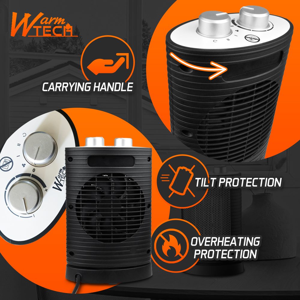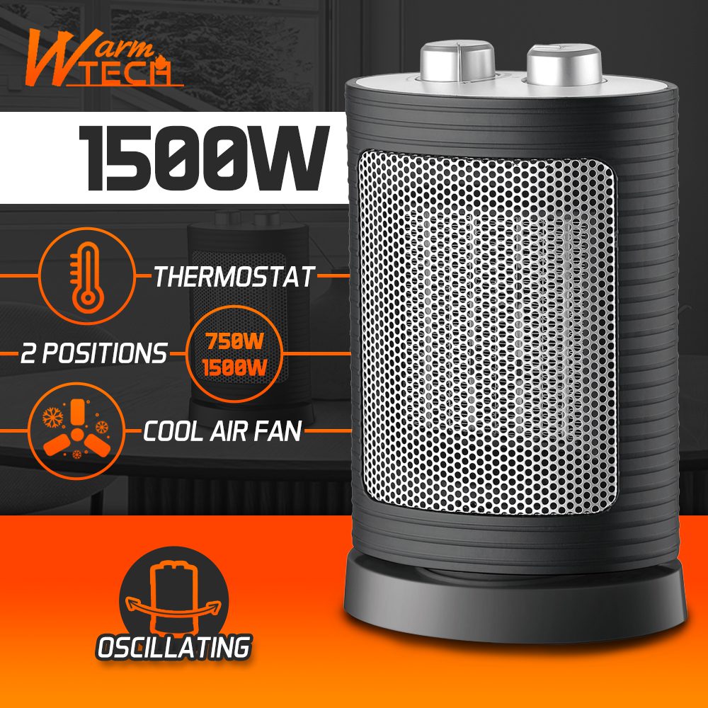 See 1500 W kompaktne elektriline küttekeha on praktiline lahendus väikeste ruumide kütmiseks. Tänu kahele küttepositsioonile (750 W ja 1500 W) saate valida oma vajadustele sobiva soojuse intensiivsuse. Võnkumisfunktsioon jaotab soojuse ühtlaselt kogu ruumis. Kütteseade on kerge ja seda on lihtne transportida, nii et saate seda kiiresti sinna viia, kus seda kõige rohkem vajate. Sobib eriti hästi ruumi või tööruumi kiireks, ajutiseks soojendamiseks. Sisseehitatud termostaadi abil on lihtne soovitud temperatuuri reguleerida, samas kui täiendav ventilaatori funktsioon tuleb kasuks soojematel aastaaegadel, kui on vaja ventilatsiooni.