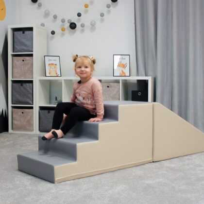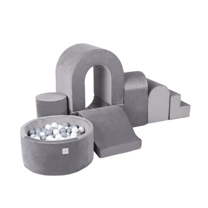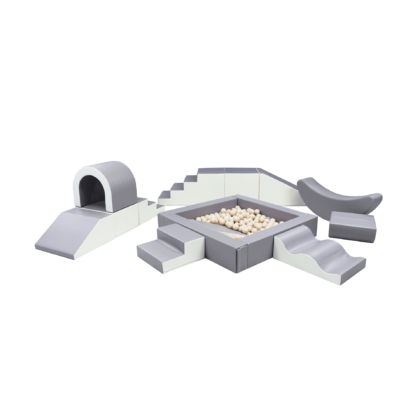 Pehmete mänguklotside komplekt PIDU, hall/valge