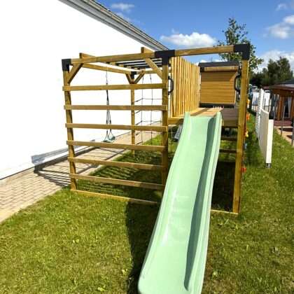 Laste mängumaja KARL liivakasti, kahe kiige ja ronimisseinaga