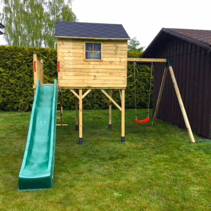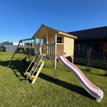 Laste puidust mängumaja TOBY kahe kiigega
