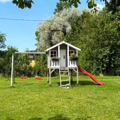 Alates: Algne hind oli: €99.99.€79.99Current price is: €79.99.Laste mängumaja MATILDE XL kahe kiigega