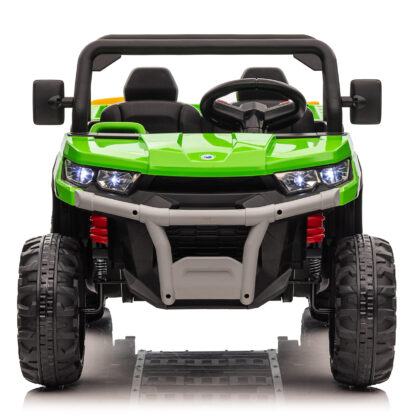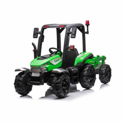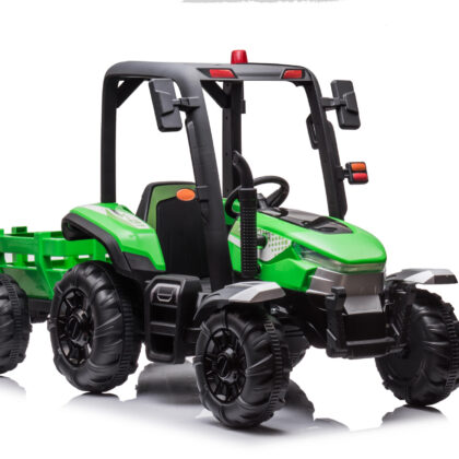Laste elektritraktor katuse ja järelkäruga, roheline