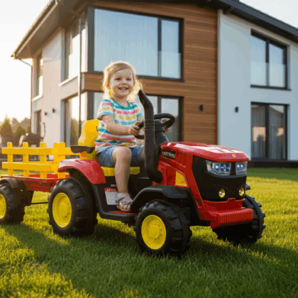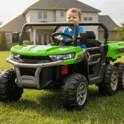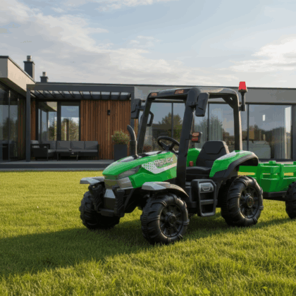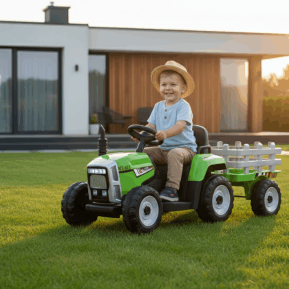 Laste elektritraktor järelkäruga, roheline