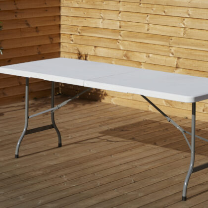 Alates: €69.99Ümmargune kokkupandav laud, 152 x 74 cm, valge